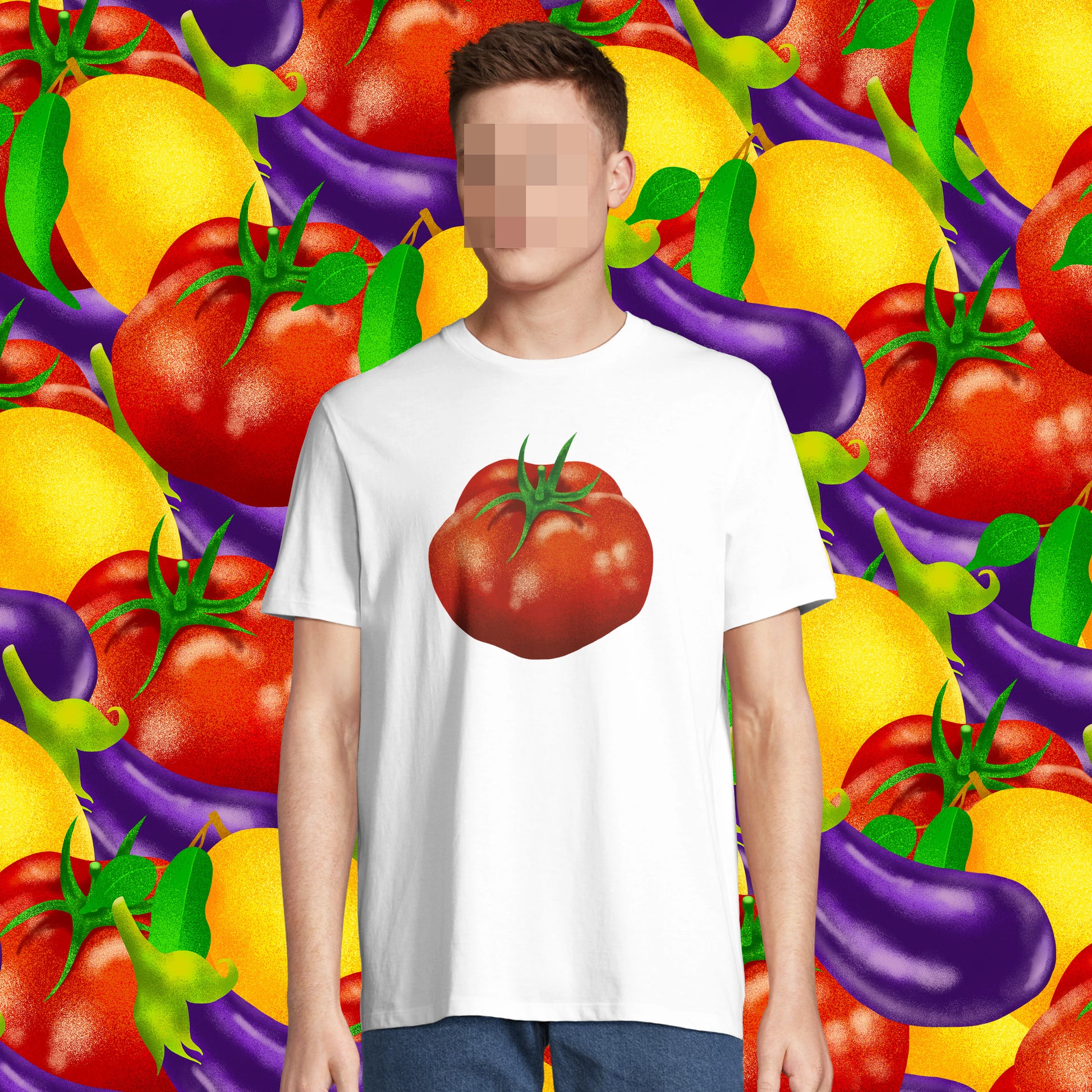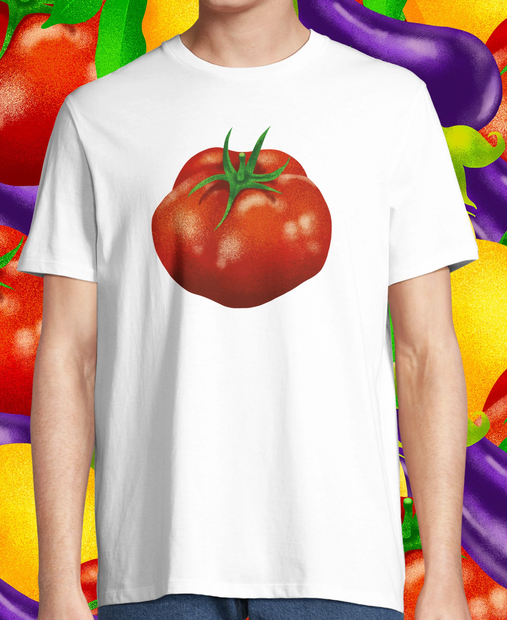 I never used to like the smell of tomatoes as a kid. I didn't eat a tomato until I was at least twenty years old (ketchup doesn't count). Now I love them, and their smell, and grow them in my garden. This illustration is a celebration of this majestic fruit. In the 1920s 'tomato' was used to describe an attractive person who loved dancing and having a good time – this is your chance liven up your wardrobe and channel some of that spirit.